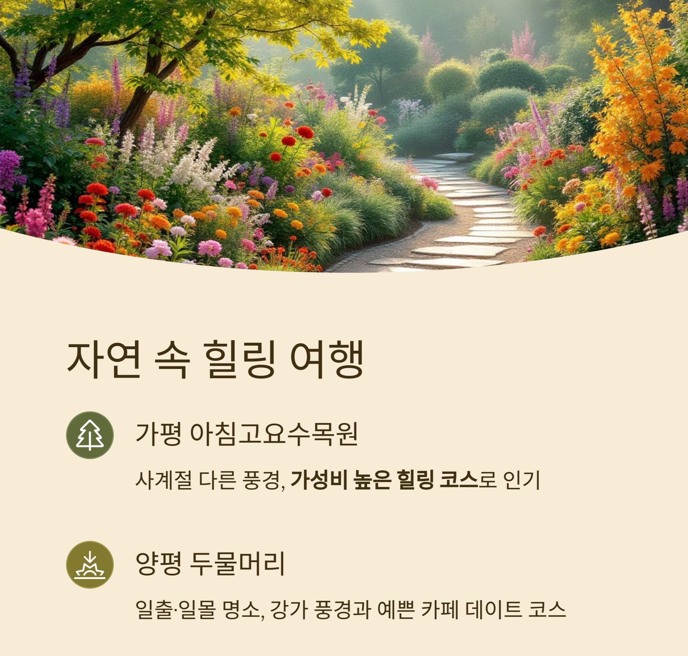 | 가평 | 아침고요수목원 | 왕복 2시간 | 사계절 힐링 풍경 |