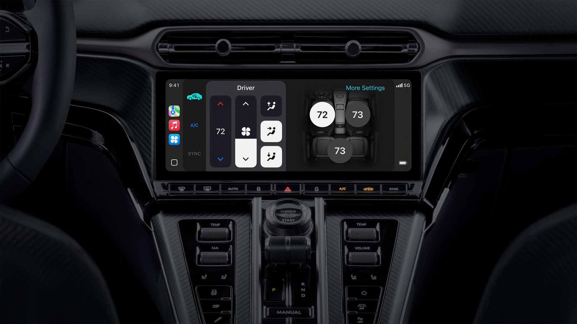 정보만 보여주는 게 아니라 차의 여러 기능도 카플레이에서 직접 조절할 수 있습니다. 음악을 조작하는 건 물론이고 차량 온도 조절이나 차량 성능 설정 같은 기능까지도 카플레이 안에서 관리할 수 있습니다. 심지어 시리를 불러서 음성으로 공조장치를 켜거나 온도를 높이는 것도 가능해졌습니다. 이제 차의 다양한 기능을 사용하기 위해 다른 메뉴로 넘어갈 필요 없이 카플레이 안에서 다 해결할 수 있으니 정말 편리할것 같습니다.