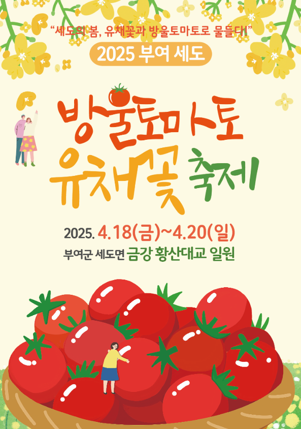 자세한 내용은 2025 부여세도 방울토마토 & 유채꽃 축제 홈페이지를 방문해 보세요.